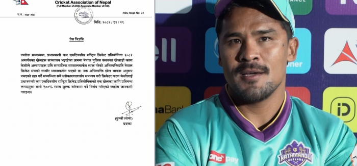 नेपाल क्रिकेट संघ (क्यान) ले राष्ट्रिय टोलीका खेलाडी करण केसीलाई खेल भावना विपरित व्यवहार गरेको भन्दै कारबाही गरेको छ।प्रधानमन्त्री कप एकदिवसीय राष्ट्रिय क्रिकेट प्रतियोगिता २०८२ अन्तर्गतका खेलहरूका क ...
