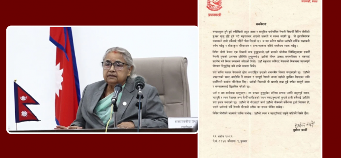 प्रधानमन्त्री शुसीला कार्कीले विपिन जोशीको मृत्युप्रति दुःख व्यक्त गरेकी छन्।बुधबार एक प्रेस विज्ञाप्ती जारी गर्दै उनले बन्धकमुक्त हुने दुई वर्षदेखिको ...