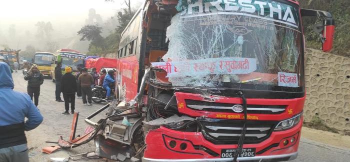 मुग्लिङ–काठमाडौं सडकखण्डअन्तर्गत धादिङको थाक्रे गाउँपालिका–६ दसकिलोमा दुईवटा बस ठोक्किएर भएको दुर्घटनामा एक जनाको मृत्यु भएको छ।दाङबाट काठमाडौं गइरहेक ...