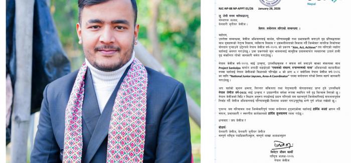 नेपाल जेसिस २०२६ को कार्यकालका लागि राष्ट्रिय जुनियर जेसिज कार्यक्रम अन्तर्गत क्षेत्र ‘क’ जुनियर जेसिज संयोजक (National Junior Jaycees Area–A Coordina ...