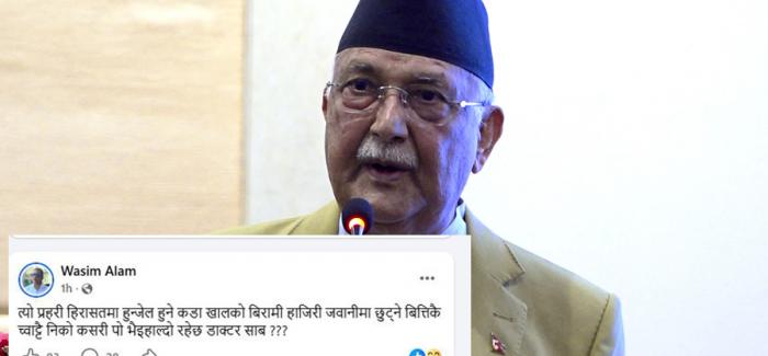 ओली रिहा भएलगत्तै निको भएको भन्दै नेता वासिम बालमको व्यङ्ग्य : हिरासतको बिरामी बाहिर आउँदा कसरी निको हुन्छ डाक्टर साब ?