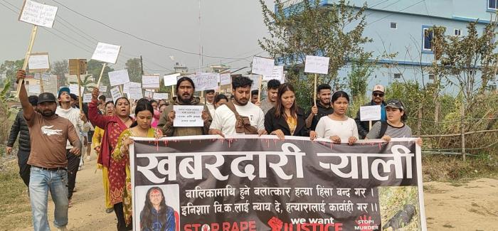 सुर्खेत। वीरेन्द्रनगरस्थित जनजागरण सामुदायिक वनमा मृत अवस्थामा भेटिएकी १६ वर्षीया इनिशा विकको घटनामा निष्पक्ष छानबिनको माग गर्दै वीरेन्द्रनगरमा प्रदर् ...