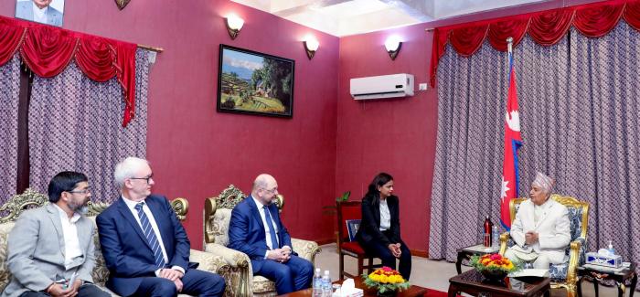 राष्ट्रपति रामचन्द्र पौडेलसँग जर्मनीको फ्रेडरिक एबर्ट स्टिफटुङका ग्लोबल प्रेसिडेन्ट डा.मार्टिन सुल्जले शिष्टाचार भेट गर्नुभएको छ । राष्ट्रपति निवास शि ...