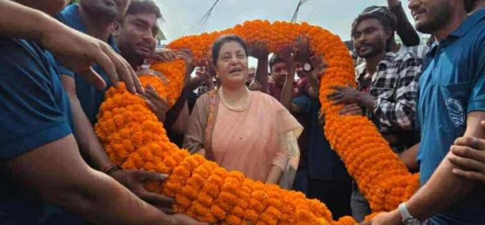 पूर्वराष्ट्रपति विद्यादेवी भण्डारीलाई नेकपा एमालेका कार्यकर्ताहरूले बारामा ५१ केजी फूलको मालाले स्वागत गरेका छन्।पार्टीको निर्देशनविपरित एमालेका कार्य ...