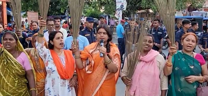 जनता समाजवादी पार्टी नेपाल निकट समाजवादी महिला सङ्घ धनुषाले जनकपुरधाममा झाडुसहित विरोध प्रदर्शन गरेको छ।शनिवार सङ्घका महिला सदस्यहरूसहित जसपा नेपालका ...