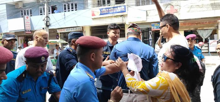 सञ्चार विधेयकको विरोधमा कोशी प्रदेश सभा सचिवालय अगाडि धर्ना दिन पुगेका पत्रकारहरुमाथि शुक्रवार प्रहरीले धकपडक गरेको छ। नेपाल पत्रकार महासङ्घ कोशी प्रद ...