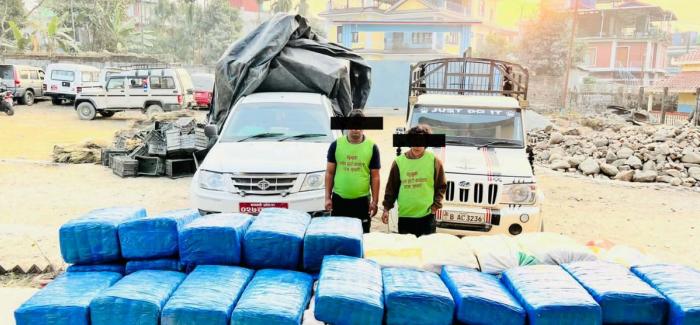 सुनसरीको धरानमा प्रहरीले ९ सय ५५ केजी गाँजासहित दुई जना व्यक्ति र दुई वटा सवारी साधन नियन्त्रणमा लिएको छ।धरान उपमहानगरपालिका २० विष्णुपादुकास्थित बरडा ...