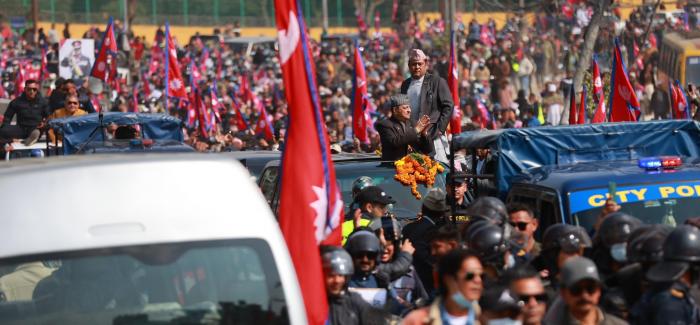 झापा भ्रमण सम्पन्न गरी पूर्वराजा ज्ञानेन्द्र शाह काठमाडौँ आइपुगेका छन्।उनको आगमनका अवसरमा त्रिभुवन अन्तर्राष्ट्रिय विमानस्थल परिसरमा समर्थकहरूको उल्ले ...