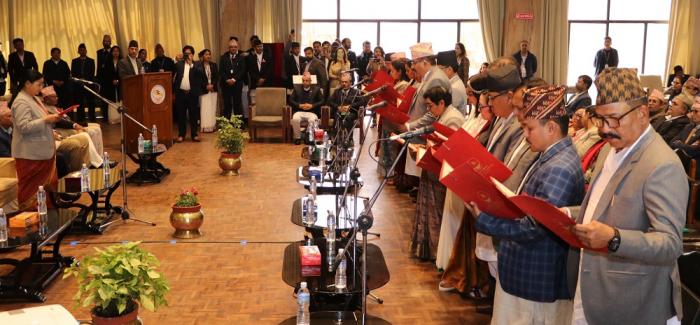 राष्ट्रियसभाका नवनिर्वाचित १९ सदस्यले आज पद तथा गोपनीयताको सपथ लिनुभएको छ।नयाँ वानेश्वरस्थित संसद भवनमा सङ्घीय संसद सचिवालयद्वारा आज आयोजित समारोहमा स ...