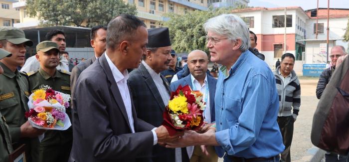 नेपाल भ्रमणमा रहेका बेलायतका विकास र अफ्रिका तथा राष्ट्रमण्डल विकास कार्यालयका मन्त्री एन्ड्र्यु मिचेलले सोमबार बुटवलस्थित लुम्बिनी प्रादेशिक अस्पतालक ...