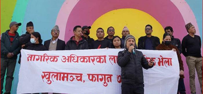 काठमाडौं खुलामञ्चबाट नागरिक अधिकार आवाज उठेको छ। मुक्त टुँडिखेल अभियान ‘अकुपाई टुँडिखेल’ ले नागरिक अधिकारका लागि सोमबार नागरिक भेला गरेको हो।खुलामञ्च ...
