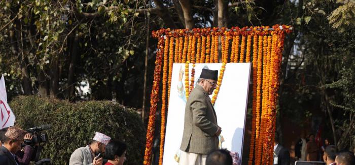 प्रधानमन्त्री पुष्पकमल दाहाल प्रचण्डले पृथ्वीनारायण शाहको तस्बिरमा माल्यार्पण गरेका छन्।३०२ औँ पृथ्वी जयन्ती एव राष्ट्रिय एकता दिवसका अवसरमा राष्ट्रिय ...