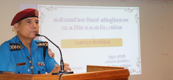 बिराटनगर, श्रावण १७ गते ।कोशी प्रदेश प्रहरी कार्यालय बिराटनगरको सभाहलमा संचालित ३ कार्यदिन अवधिको मनोसामाजिक विमर्श अभिमुखिकरण तालिम सम ...