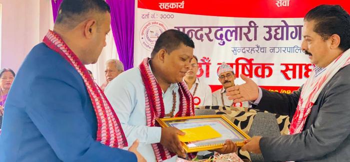 मोरंग । सुन्दरदुलारी उधोग बाणिज्य संघको छैटौं साधारण सभाबाट पत्रकार एलएन गच्छदार सम्मानित भएको छ। उनलाई कार्यक्रमका प्रमुख अतिथी रहेका नेपाल उधोग ...