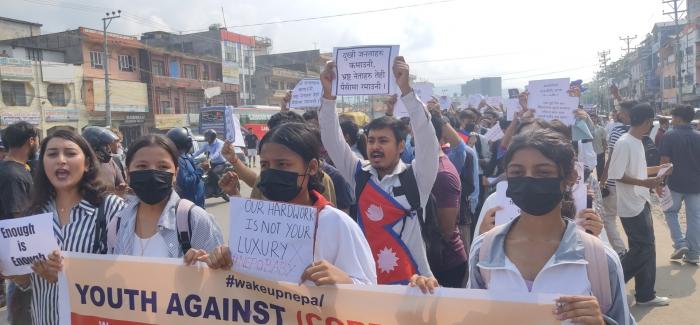 सामाजिक सञ्जाल बन्दको विरोधमा बुटवलमा जेनजी पुस्ताका युवाले प्रदर्शन गरेका छन्। उनीहरू भ्रष्टाचार, अव्यवस्था र अभिव्यक्ति स्वतन्त्रतामाथि सरकारको नियन ...