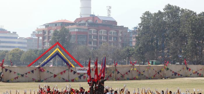 टुँडिखेलमा मङ्गलबार आयोजित श्री राष्ट्रिय सेवा दल दीक्षान्त कवाज समारोह २०८० मा नृत्य प्रस्तुतका क्रममा कलाकारहरु। ...