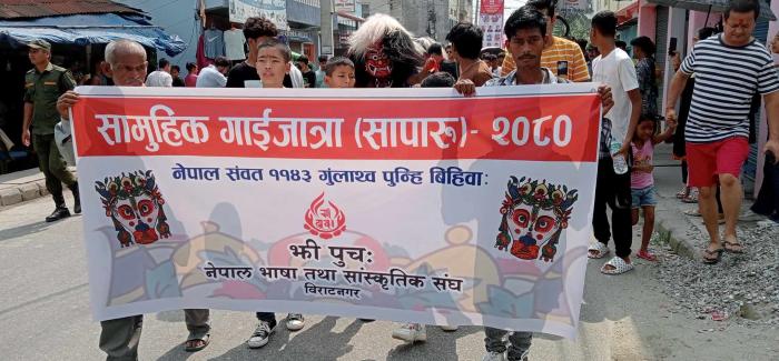 विराटनगर, १४ भाद्र ।वर्ष दिन भित्र देहावसान भएका आफन्तहरुको सम्झनामा विराटनगरमा पनि सामुहिक गाईजात्रा पर्व मनाइएको छ । नेवार समुदायमा देहावसान भएको मा ...