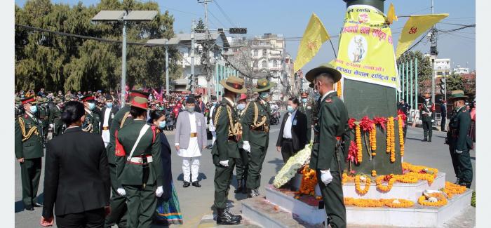 राष्ट्रपति विद्यादेवी भण्डारीले पृथ्वी जयन्ती तथा राष्ट्रिय एकता दिवसका अवसरमा नेपालका शाहवंशीय राजा पृथ्वीनारायण शाहको सालिकमा पुष्पहार अर्पण गर्नुभए ...