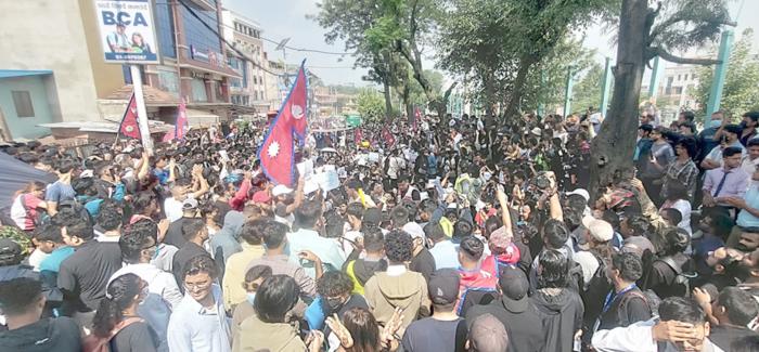 सामाजिक सञ्जाल प्रतिबन्ध, नातावाद र भ्रष्टाचारविरुद्ध ‘जेन–जी’ पुस्ताले सोमबार आयोजना गरेको आन्दोलनलाई राष्ट्रिय स्वतन्त्र पार्टी (रास्वपा) का सांसद अ ...